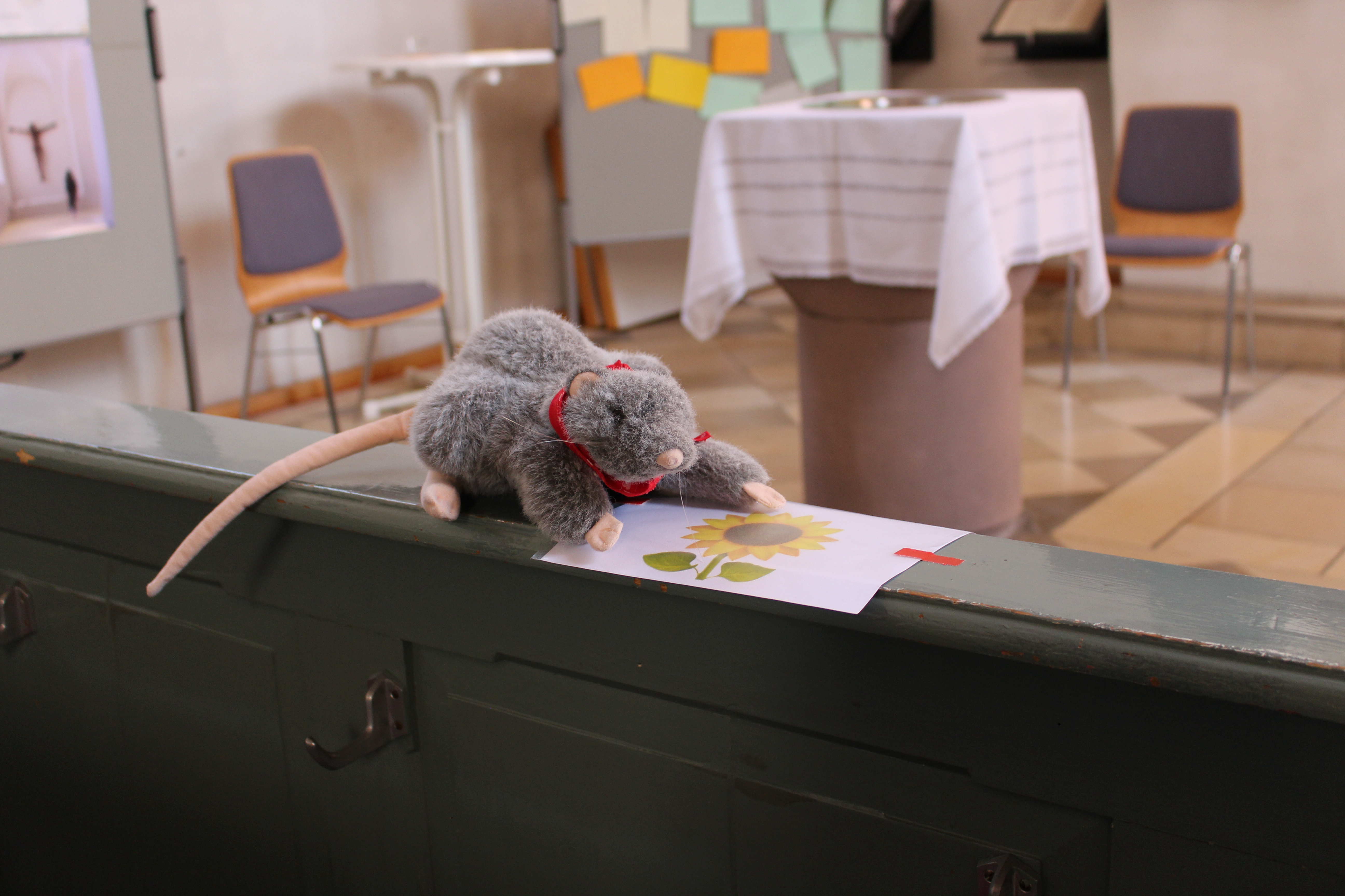 Gottesdienst mit der Kirchenmaus Pauline, Pfarrer Andreas Grell, Dekanin Murner, Dekanatskantorin Beatrice Höhn und Religionspädagogin Laura Campbell.…