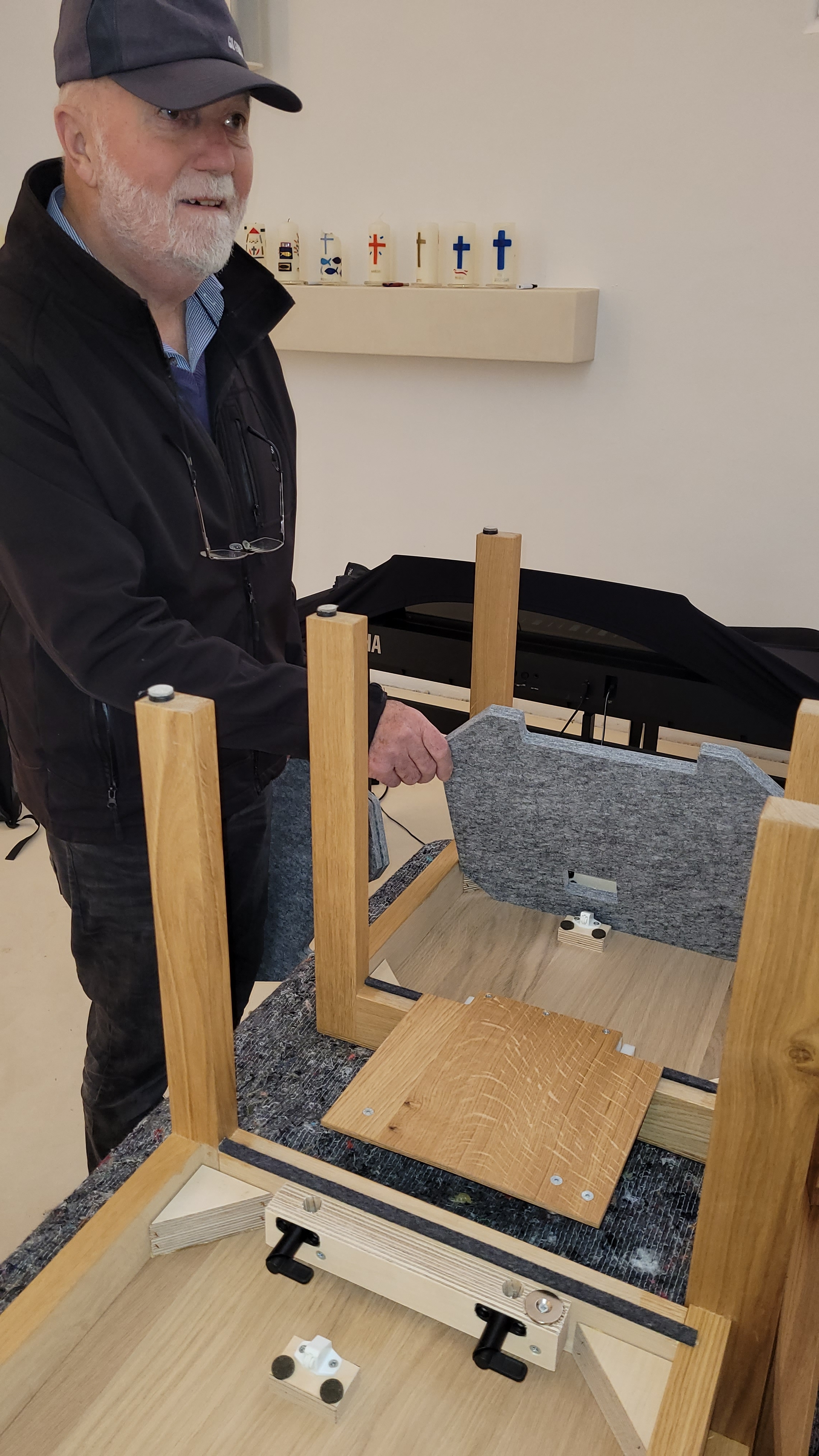 Die Unterseite aller Stühle der Christuskirche wurde von geschickten Händen mit dickem Akustikfilz beklebt - Bildergalerie