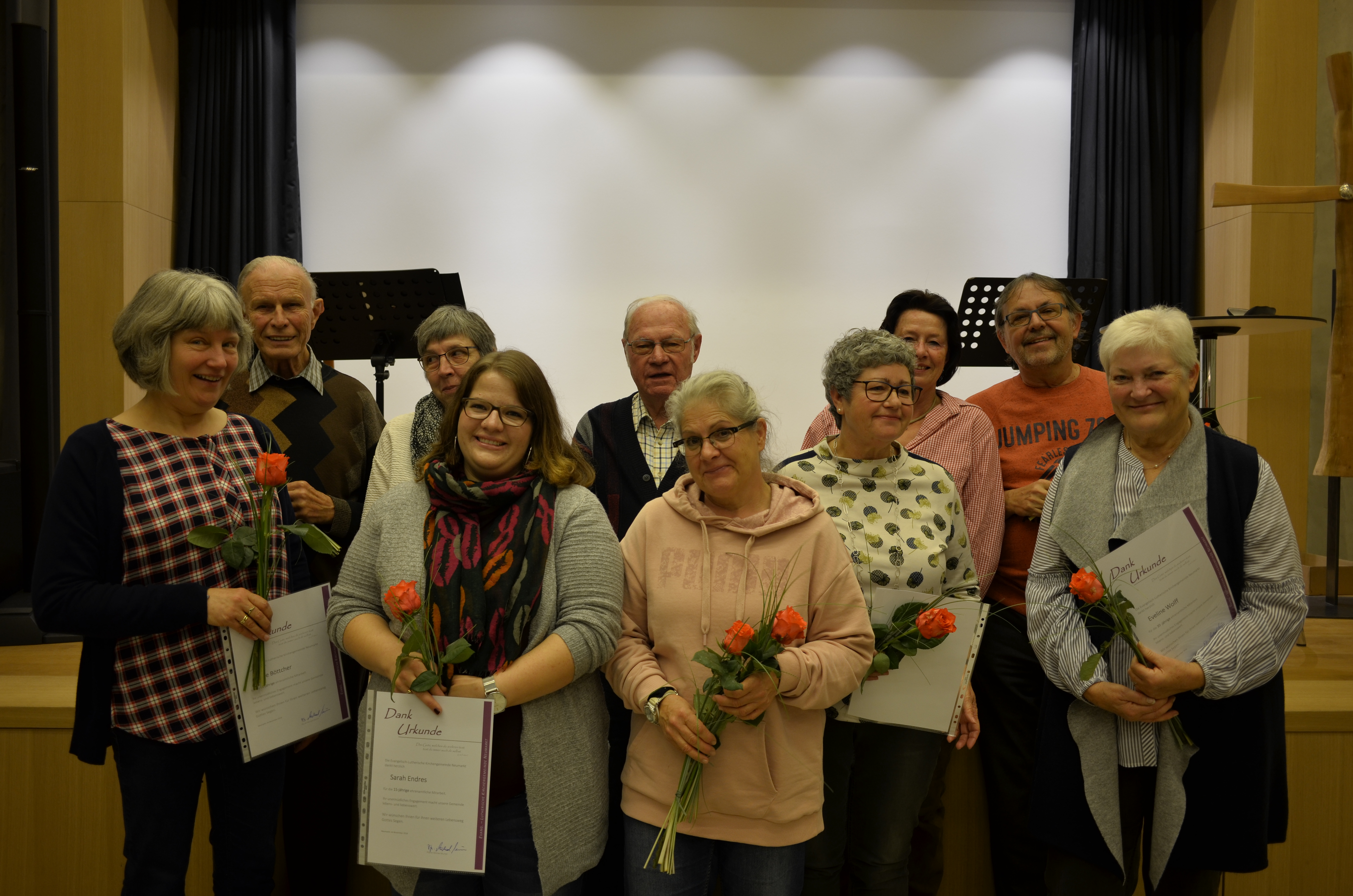 Rosen für die Geehrten, ein süßes Herz für alle ehrenamtlichen Mitarbeiter: Die Hauptamtlichen der Kirchengemeinde bescherten den Ehrenamtlichen …