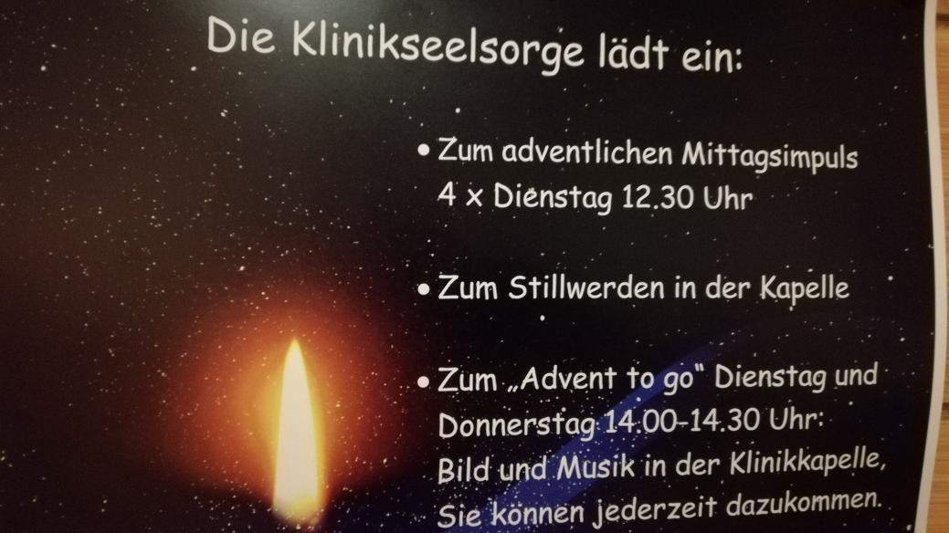 Einfach sein dürfen: Da im Moment keine Gottesdienste stattfinden dürfen, ist der Raum mit einer Adventsinstallation eingerichtet für Patient*innen…