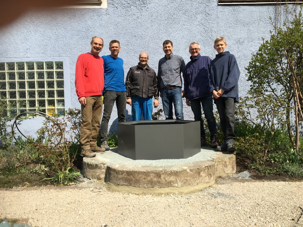 Fleißige Helfer haben am Samstag, 13. April 2019 unter der Regie von Bernhard Hammerbacher den Brunnen im Kirchgarten aufgestellt