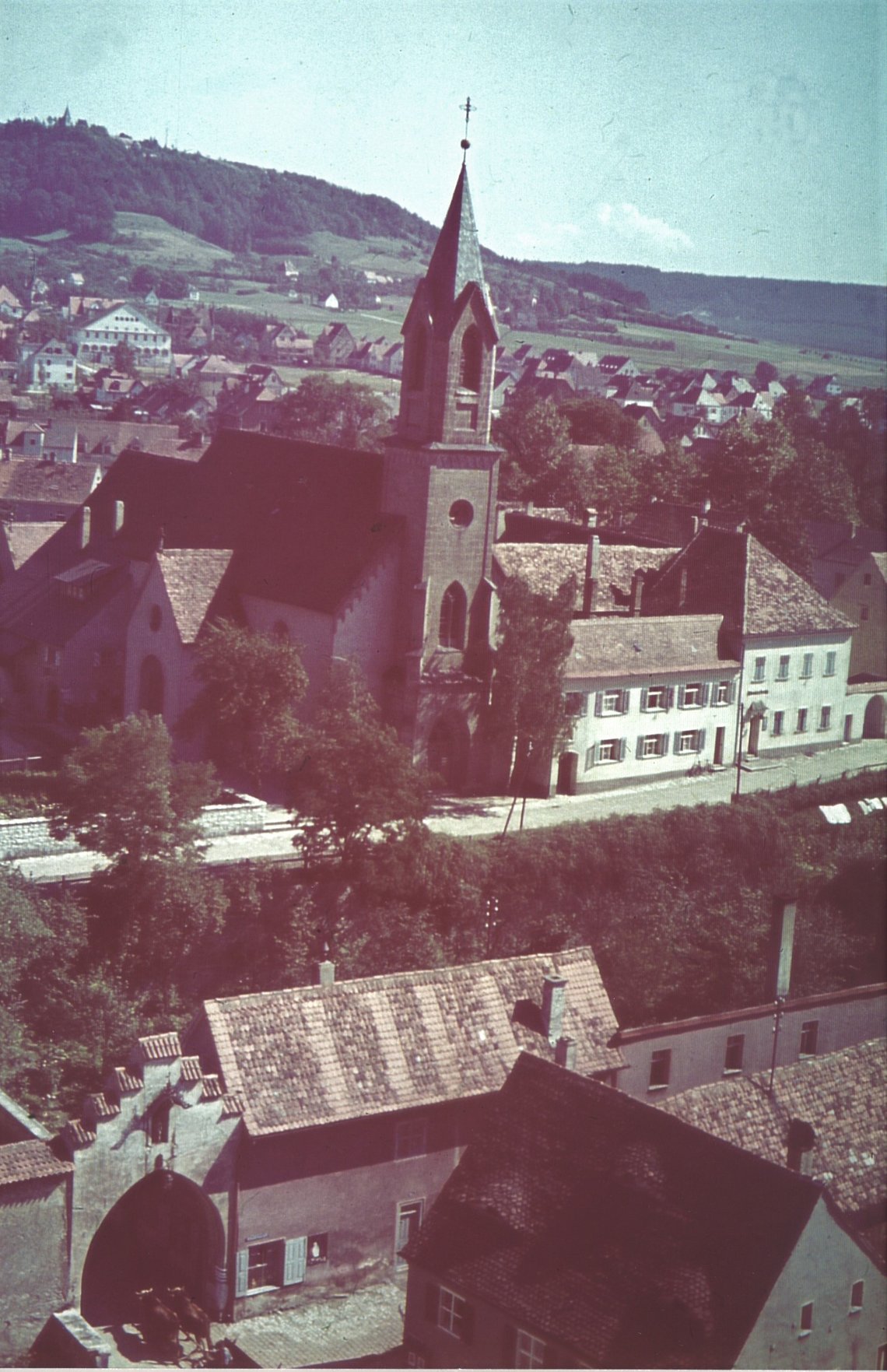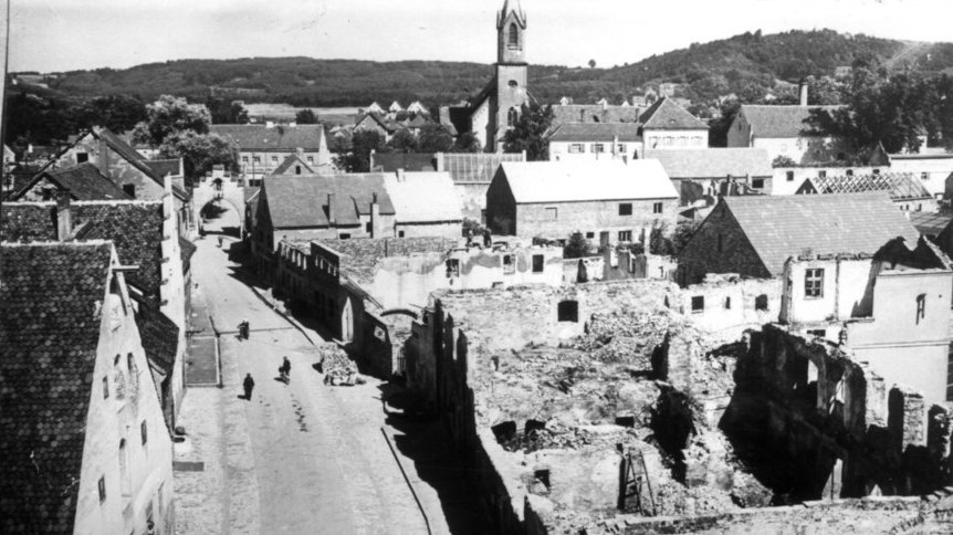 1945 erlitt der Kirchturm durch Bomben und Granaten Beschädigungen. Das Kirchendach sowie die Orgel wurden schwer getroffen. Sämtliche Fenster waren zerborsten.