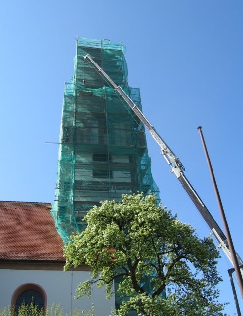 Die nächste größere Baumaßnahme war die Neueindeckung des Kirchturmdaches im April 2006.