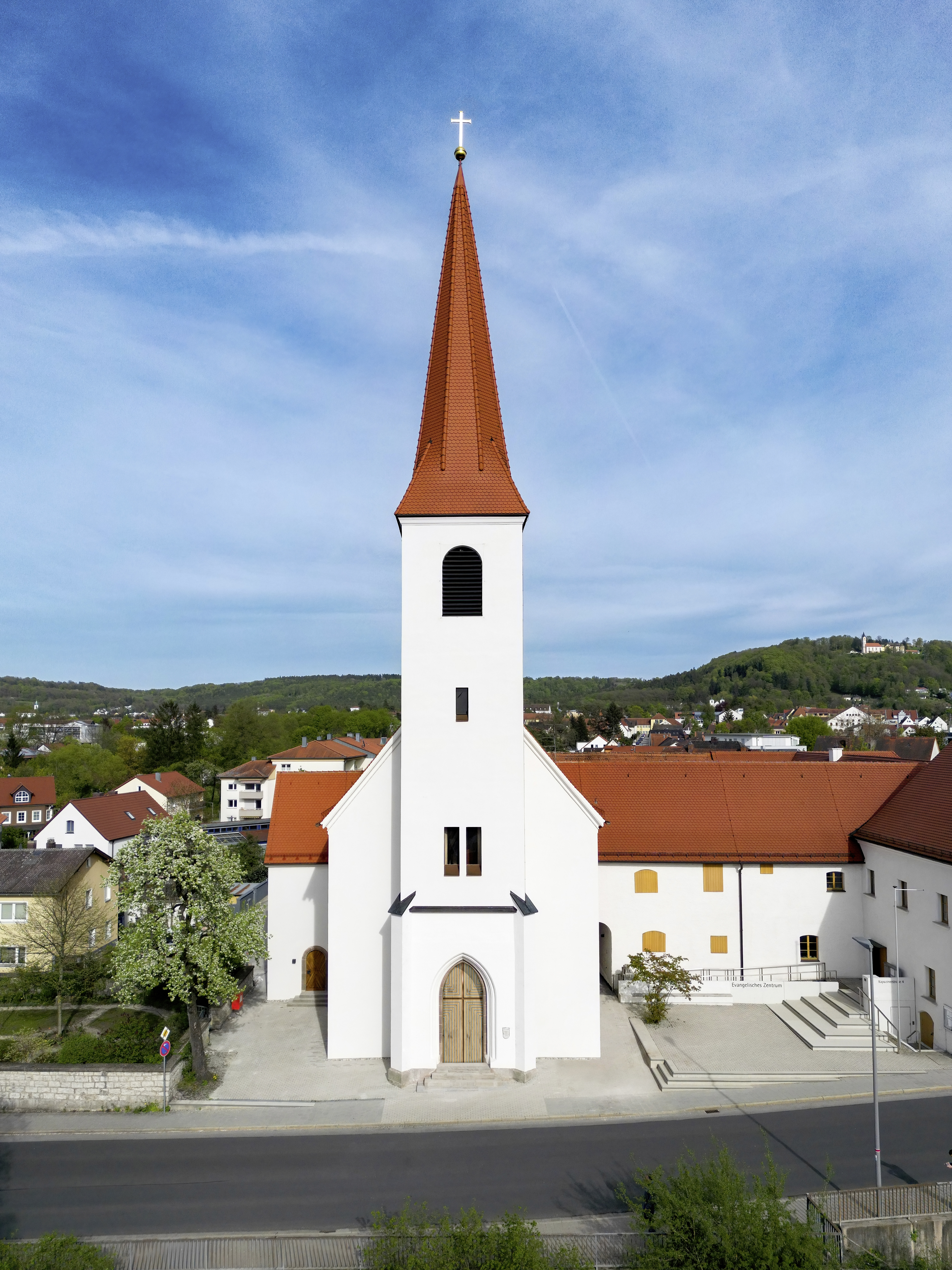 Die heutige Evangelisch-Lutherische Christuskirche war vormals Kirche vor der Stadtmauer im Kloster der mit der Durchführung der Gegenreformation betrauten Kapuziner. Gundsteinlegung 1674, Aufbau teilweise aus Steinen der Burgruine Wolfstein, Einweihung am 3. Oktober 1677 durch den Eichstätter Weihbischof.